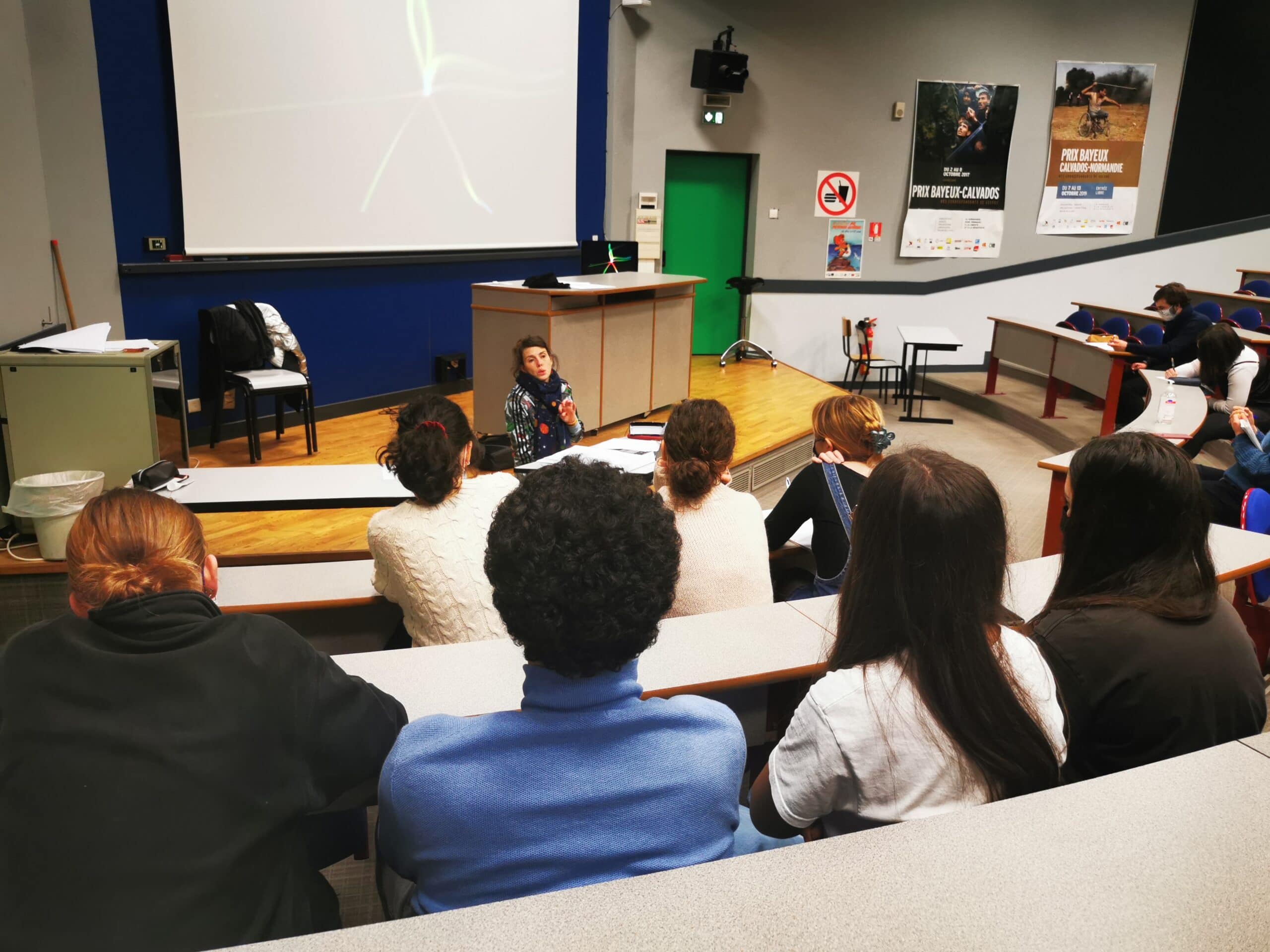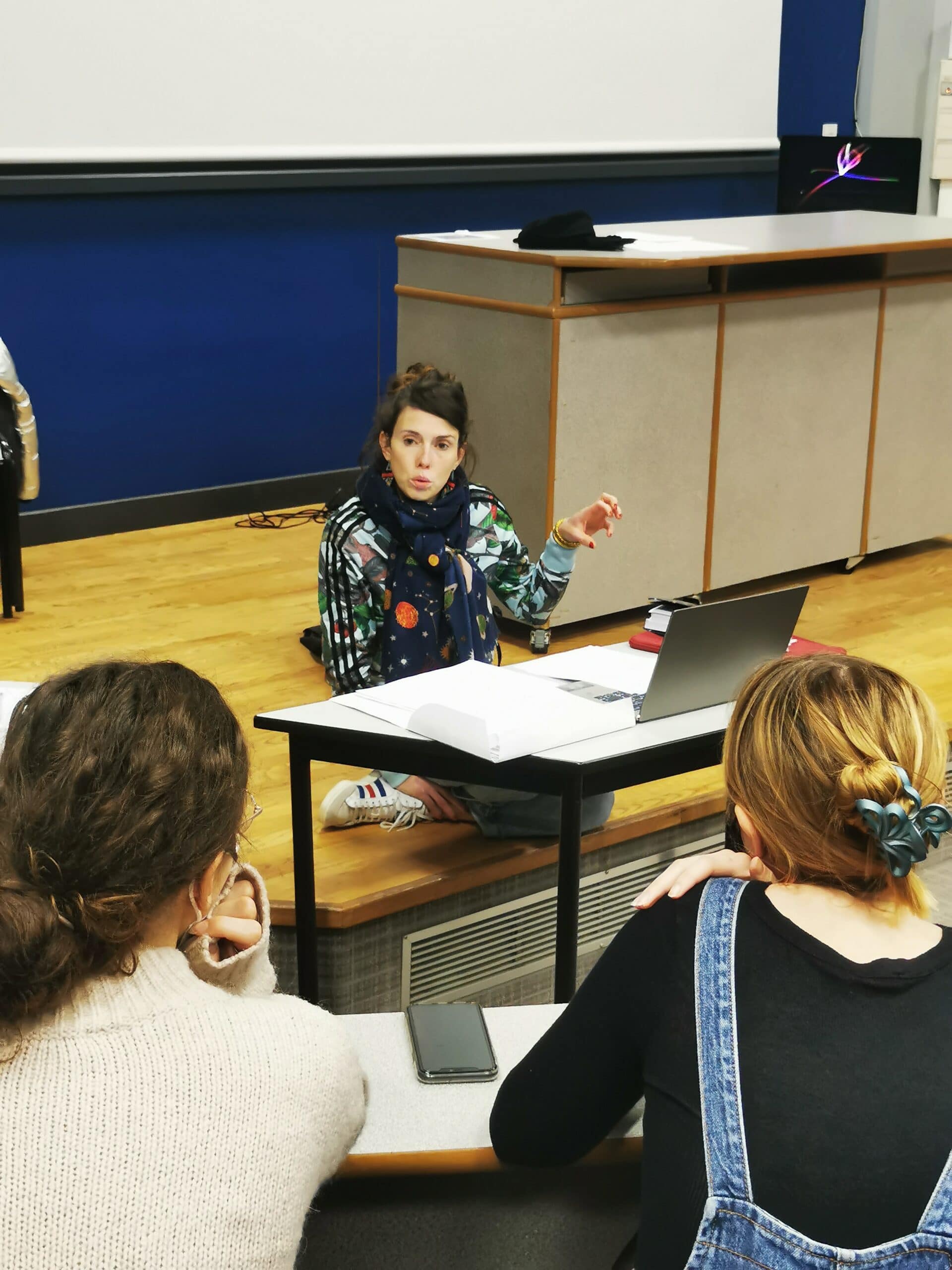 Lors des ateliers d’écriture, plusieurs thèmes ont à nouveau été abordés. Les exercices étaient nombreux et poussaient les étudiants à réfléchir à des questions qu’ils ne s’étaient peut-être jamais posées. Pour les artistes, ces retours sont également bénéfiques pour alimenter leur propre réflexion. Les participants ont donc été invités à écrire sur le consentement, la première fois, à jouer sur les différents vocabulaires pour parler de sexualité sans la nommer ou ne pas parler de sexualité en utilisant des termes connotés. Faisant échos aux premières conversations que le groupe a eu, l’échange s’est terminé par la réflexion sur ce que serait le spectacle idéal traitant de sexualité.